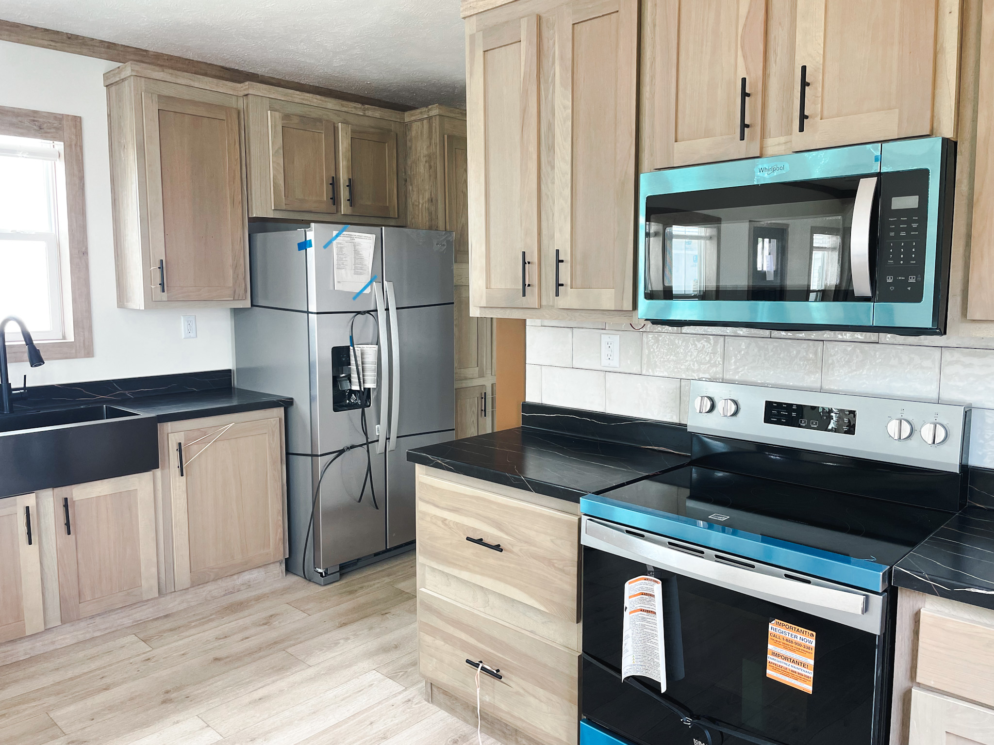 Kitchen Additional Specs: Lined Cabinets w/Adjustable Shelving / Hidden Cabinet Hinges / Decorative Pulls / Stainless Microwave